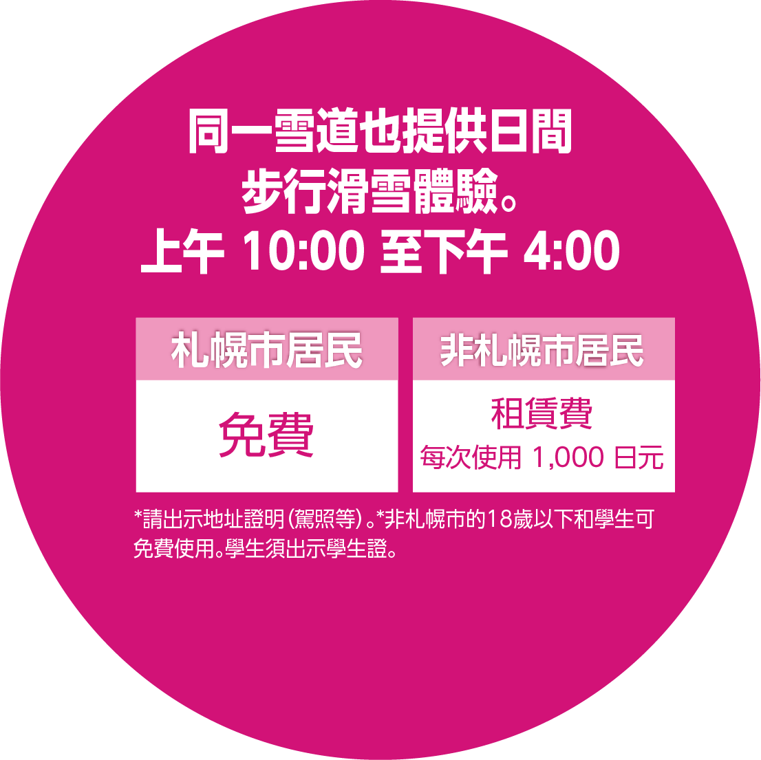 收費/成人 2,000日圓 高中生及以下 1,000日圓(札幌市居民優惠:成人 500 日圓折扣 高中生及以下:免費)