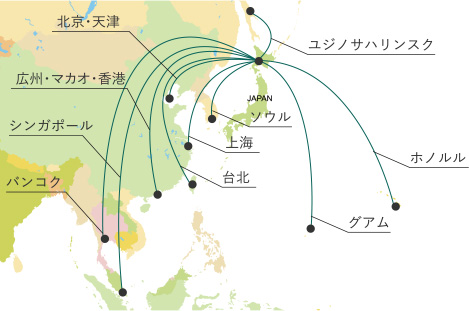1日52往復・世界最大の乗降客数を誇る東京~札幌間の航空路線(2016年12月時点)や、韓国・中国・タイ・マレーシア・シンガポールなどアジア諸国を中心に結ばれる新千歳空港国際線などによるスムーズなアクセスは、スポーツイベントの成功やスポーツツーリズムの振興に結びつく重要な要素です。