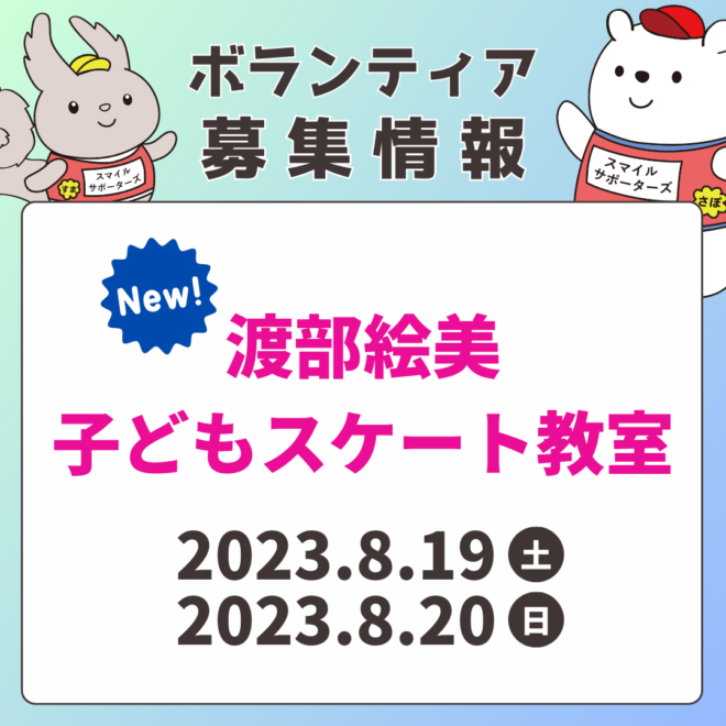 スケート経験者は大歓迎! スケート経験がなくでも活動できます。 また、ボランティア未経験の方の応募もお待ちしています。 スマサポ登録をして、ぜひお申し込みください!