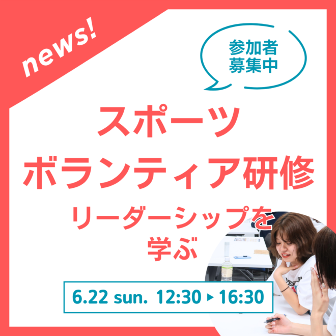 「スポーツボランティア研修(リーダーシップを学ぶ)」を6/22(日)に開催します!
