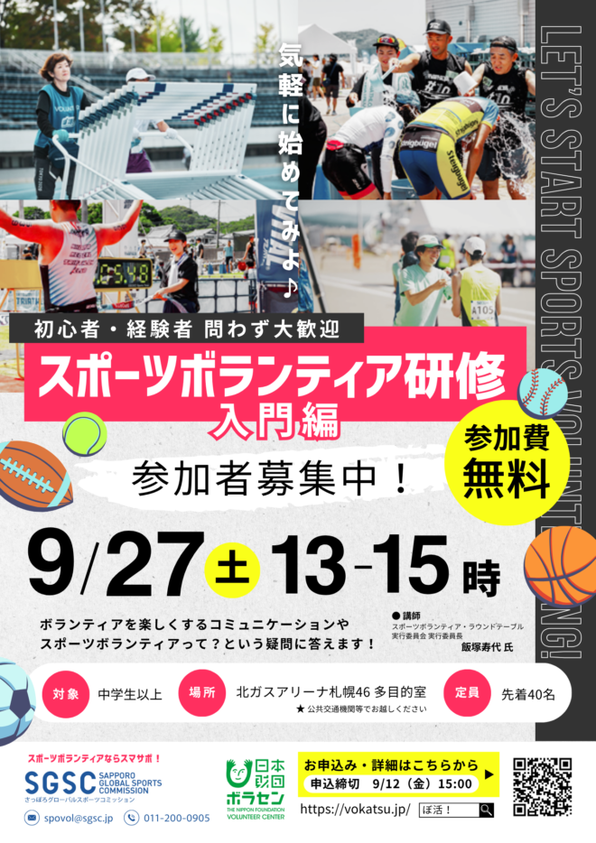 ボランティア初心者の方をはじめ、札幌マラソンやレバンガ北海道ホームゲームなど